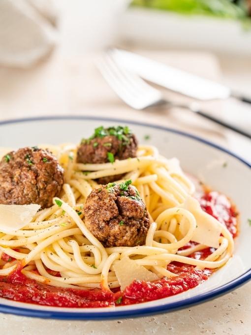 Spaghetti mit Polpette al sugo sind ein Rezept für das Herz und echtes Soulfood. Nur traditionell italienisch sind sie nicht. In manchen Ecken Italiens kann man die kleinen Fleischklößchen gelegentlich auf der Pizza oder in der Lasagne finden. Die Variante mit der Pasta ist aber eher ein Gericht der italoamerikanischen Küche. Italienische Immigranten kochten es Ende des 19. Jahrhunderts in New York. Serviert als Spaghetti meatballs, begann für die runden Frikadellen so eine steile Karriere auf den Tellern der USA und später auf der ganzen Welt.