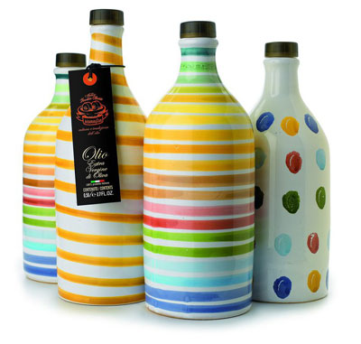 Seit einiger Zeit haben wir jetzt schon Olivenöl in Keramikflaschen im Angebot. Hergestellt werden die farbenfrohen Keramikflaschen in Grottaglie. Der Familienbetrieb Muraglia arbeitet mit den Töpfern aus der Keramikstadt zusammen und verbindet so die altehrwürdige Tradition der Olivenölherstellung mit dem alten Handwerk des Töpferns.