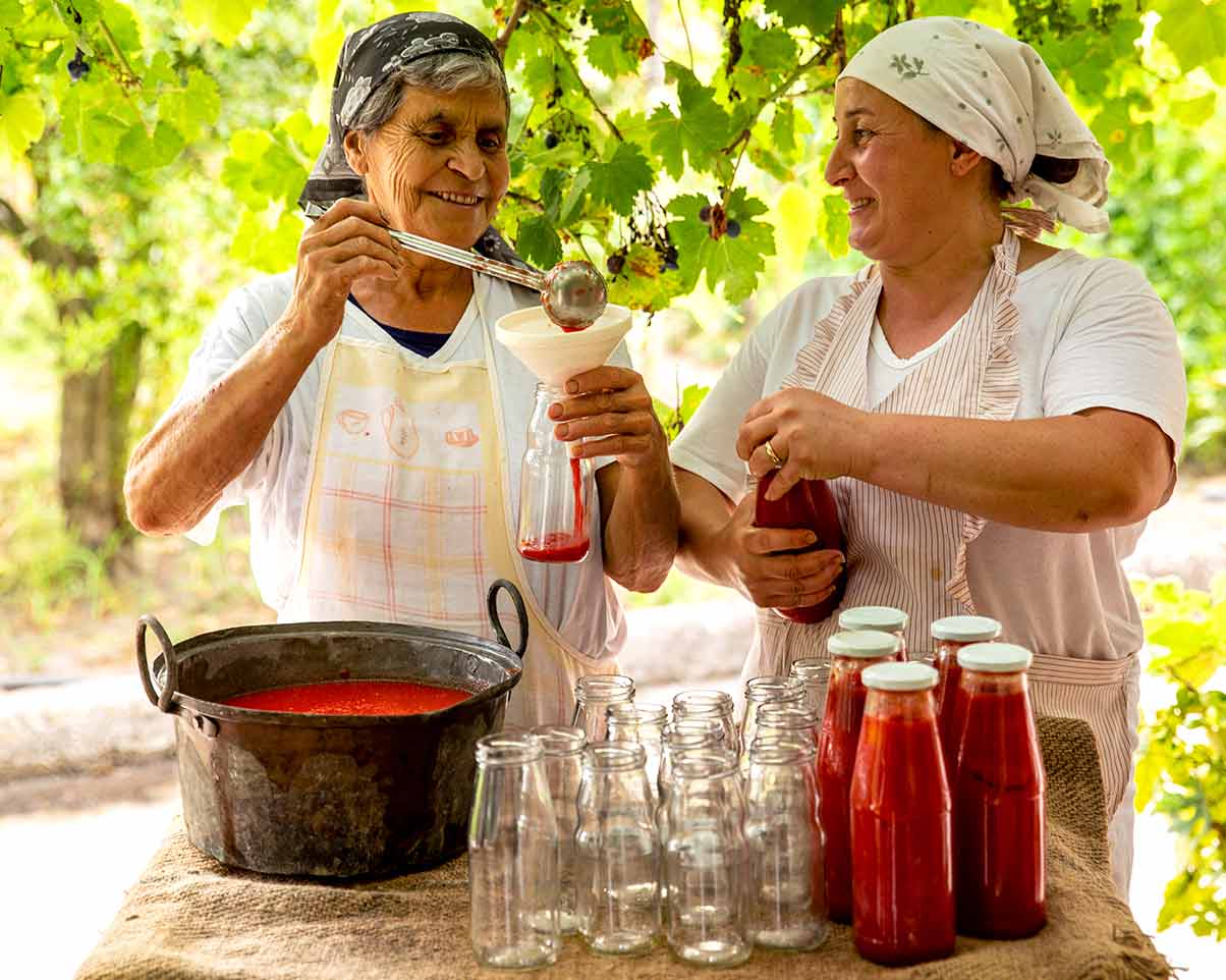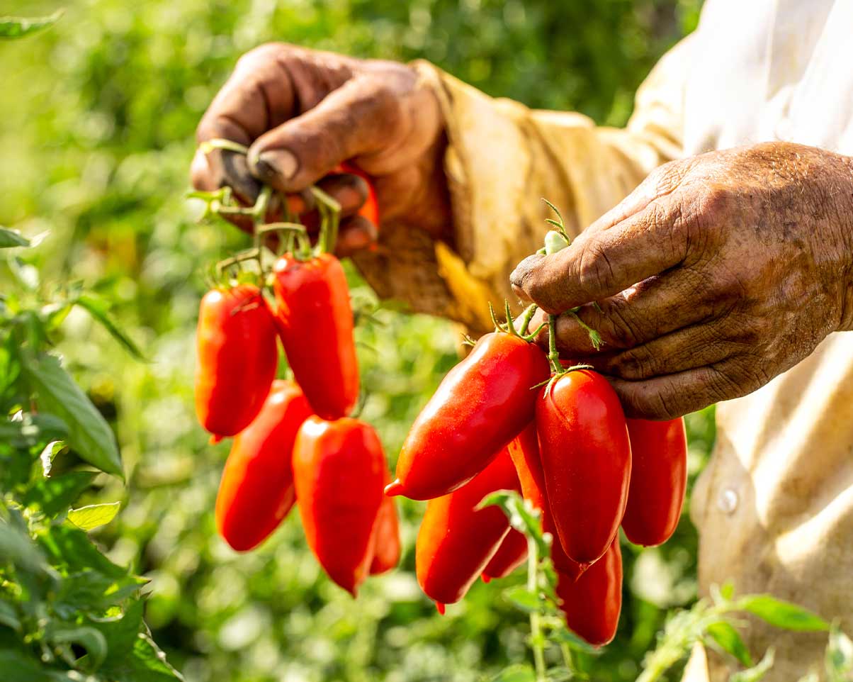 Oft sind das kleine Familienbetriebe, die tatsächlich noch per Hand ernten. Diese wertvollen Pomodori werden sofort frisch verarbeitet, damit das unverwechselbar sonnenverwöhnte Aroma und der beste Tomaten-Geschmack erhalten bleiben.
