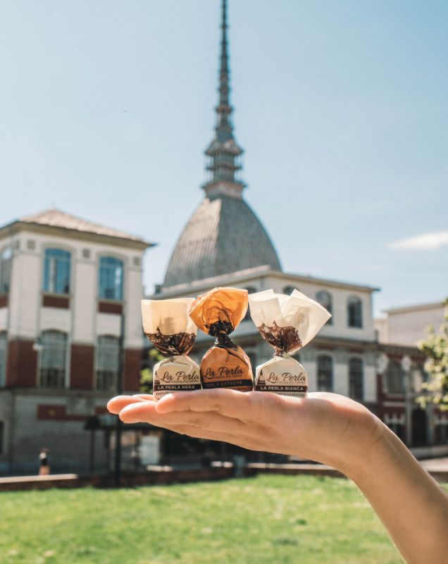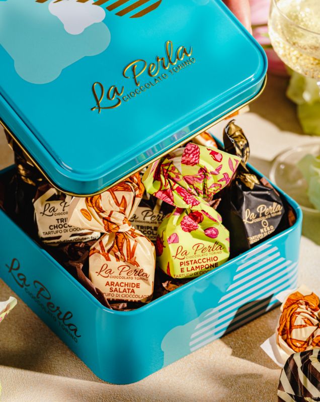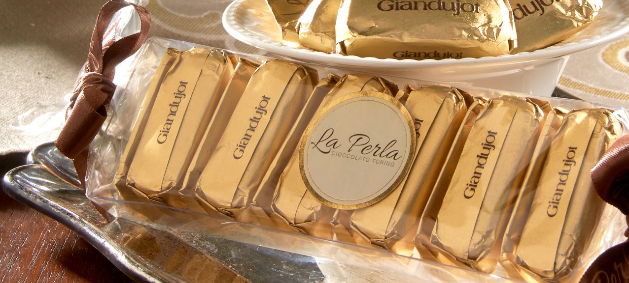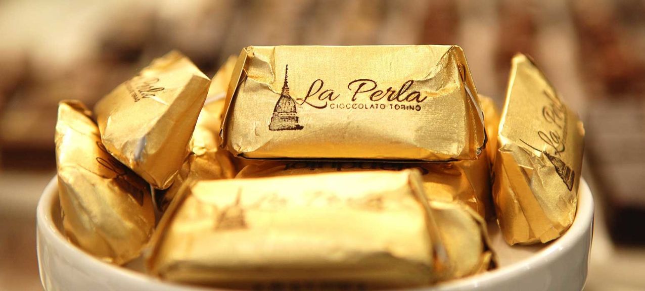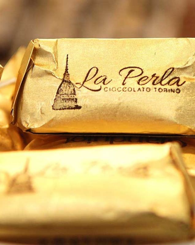 Die Silhouette Turins ziert nicht nur die hübsch gestalteten Verpackungen, auch die inneren Werte der La Perla Kreationen interpretieren die Turiner Schokoladen-Tradition - denn in den alten Gassen dieser Stadt wurde der dunkle Gianduja-Nougat aus gerösteten und gemahlenen Haselnüssen erfunden.