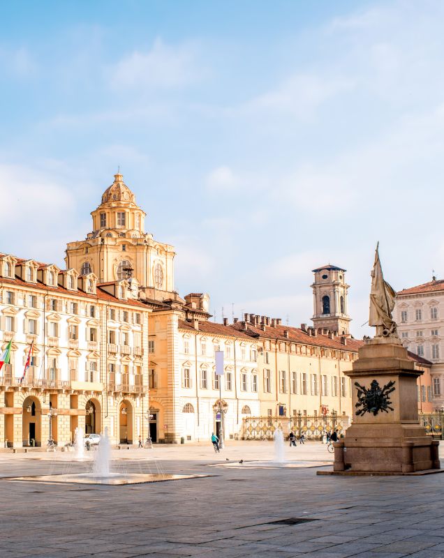 Piemont ist eine Region reich an gastronomischen und Weintraditionen: Risotto, Eiernudeln (denken wir an die sehr guten Tajerin, gewürzt nur mit Butter und Trüffel), die Bolliti, begleitet von außerordentlichen Saucen und eine große Vielfalt an Käsen, wie z. B. der Bra und der Castelmagno. Hauptstadt dieser Region ist Turin, bekannt für ihre nüchterne Eleganz der Piazze und ihre städtische Struktur, die sich den Beinamen "kleines Paris" verdient hat. Die Stadt rühmt sich mit der Erinnerung, in der Vergangenheit die erste Hauptstadt Italiens gewesen zu sein, den königlichen Residenzen, den prunkvollen Herrschaftshäusern, den historischen Cafés, berühmt für die Haselnussschokolade und die typischen Gianduiotti.