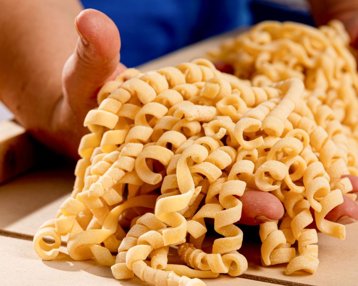 Mit der Industrialisierung im großen Stil änderten sich die Herstellungsmethoden der Pasta radikal. Ein Beispiel sind Fusilli a mano. Um 1900 beherrschten noch etliche Handwerker in Gragnano die Kunst, Nudelteig so über ein Stäbchen zu rollen, dass die typische Helixform entsteht. Heute werden die Fusilli nur noch bei Gentile a mano, also wirklich noch von Hand gedreht. Daneben gibt es viele typisch regionale Pastaformen wie Vesuvio, Paccheri oder die gewellten Mafalde.