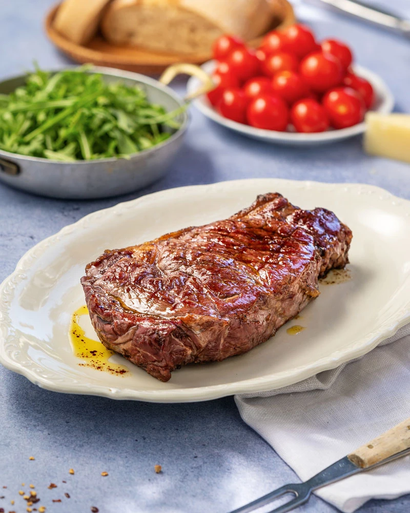 Notre conseil: Stefano Falorni recommande de sortir la Bistecca Tagliata du réfrigérateur une heure avant la préparation. Préchauffez ensuite le barbecue ou la poêle et faites griller chaque face de la viande à feu vif 3 à 5 minutes. Coupez-la en fines tranches, salez al gusto et servez.