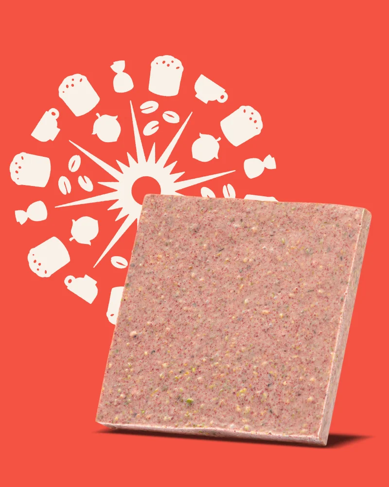 Sucre, beurre de cacao, pistaches 24 %, lait en poudre, lactosérum en poudre, framboises en poudre 4 %, émulsifiant : lécithine de soja, arôme naturel de vanille