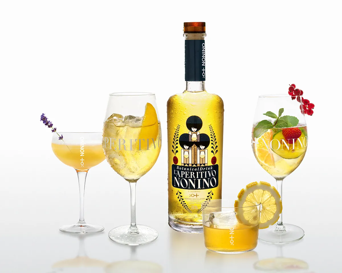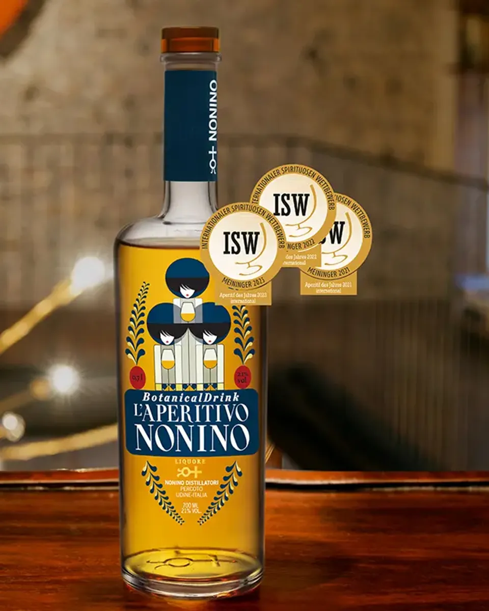 L'Aperitivo Nonino Botanical Drink a été récompensé à plusieurs reprises par le Meininger's International Award. Son secret réside dans l'infusion d'un mélange secret de botaniques à basse température. Ainsi, le parfum, le goût et la couleur des fleurs, des fruits, des baies et des racines sont préservés.