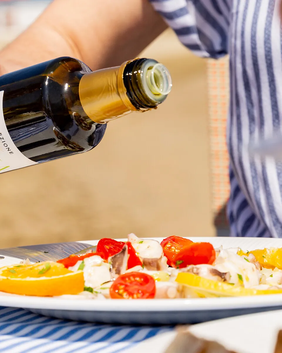 L'huile d'olive de qualité supérieure convient aux plats qui ont besoin d'arômes délicats - sans être surchargés. Utilise-la pour des salades d'été fraîches, des légumes fins, une burrata crémeuse ou du poisson cuit à la vapeur. Un délice également avec le risotto, la viande blanche ou le fenouil cuit au four. En finition sur une pizza ou des pâtes, il apporte un subtil accent méditerranéen.