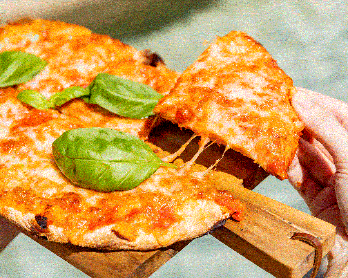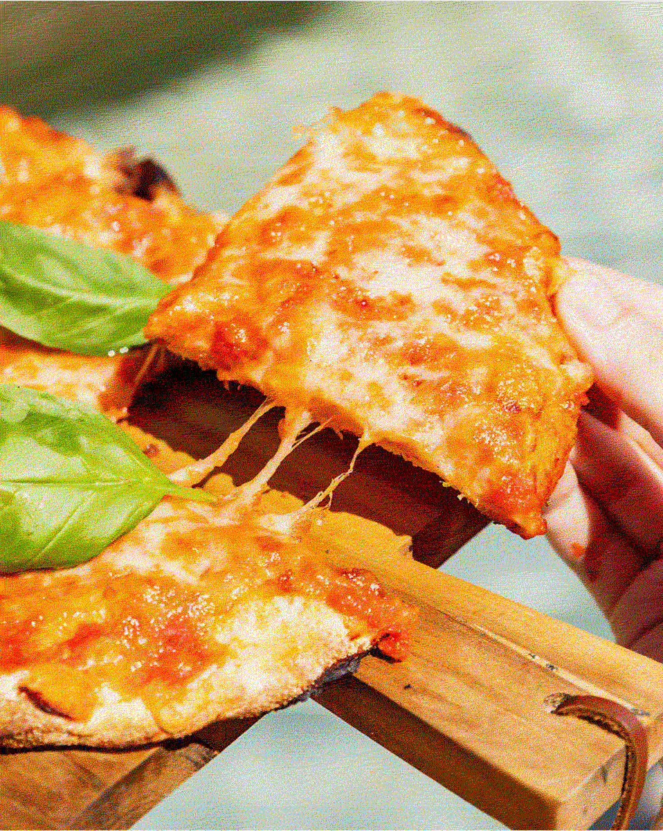 Notre Pinsa est préparée avec de la Pasta Madre, c'est-à-dire du levain, afin d'en extraire encore plus d'arômes. Sa pâte peut lever pendant 72 heures. La Pinsa est ensuite façonnée à la main et précuite dans un four traditionnel en pierre. Croustillante et bien dorée, elle n'attend plus que vous pour terminer sa cuisson. Elle se conserve au moins deux semaines, voire plus si vous la congèles.