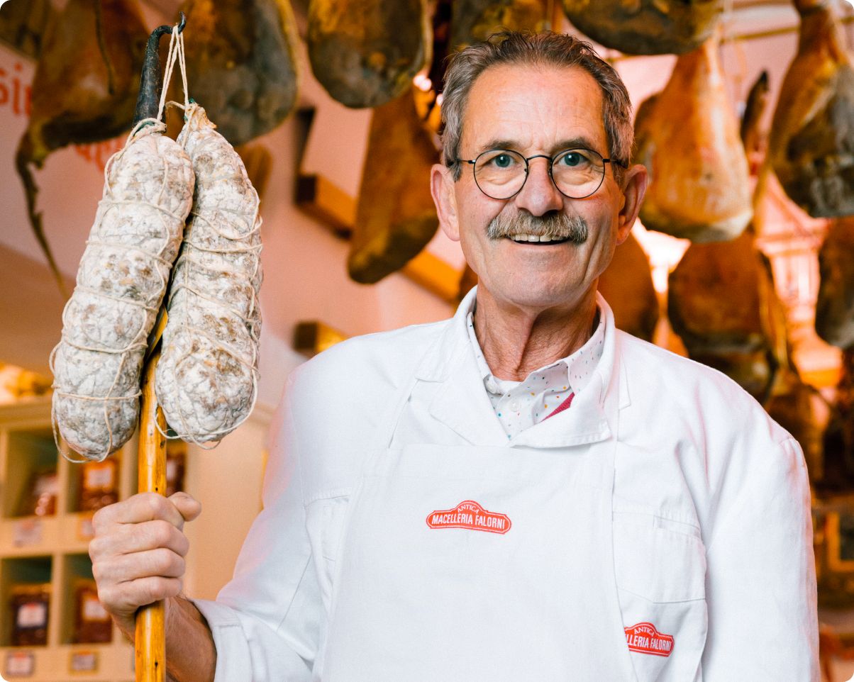 Im Chianti vertrauen die Menschen in Sachen Wurst und Fleisch seit Generationen der Macelleria Falorni, direkt am Markt der Stadt Greve. Hier herrscht Salamigott Stefano über Salsiccia, Bistecca und die traditionellen Rezepturen der Toskana.