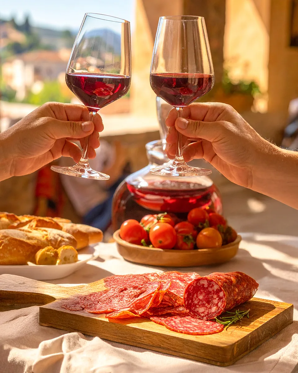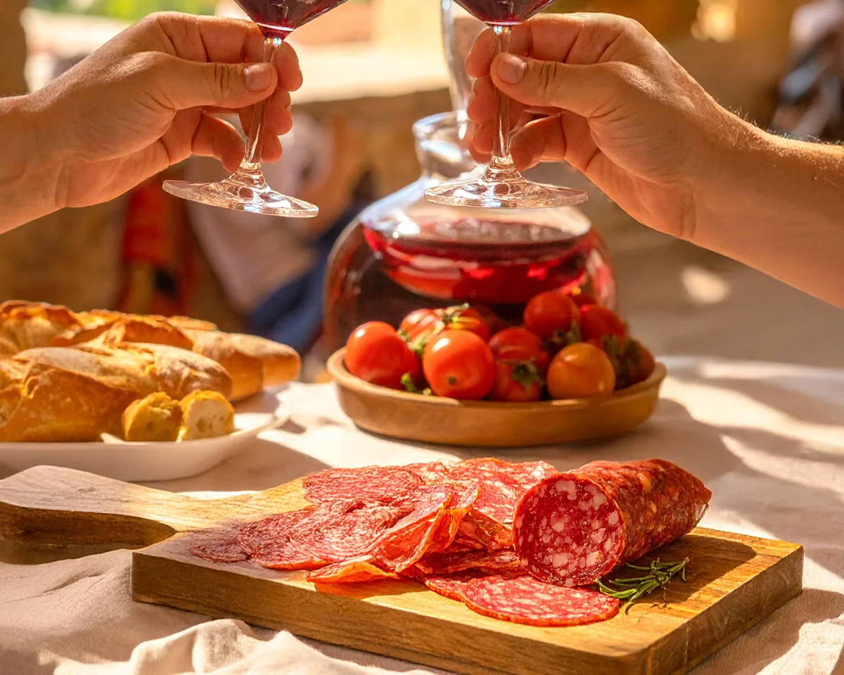 Ausgewähltes Schweinefleisch (von Schweinen aus Italien), Meersalz, Glukose, Rotwein, Kräuter, Gewürze, Antioxidationsmittel: E301, Konservierungsmittel: E252. Glutenfrei.