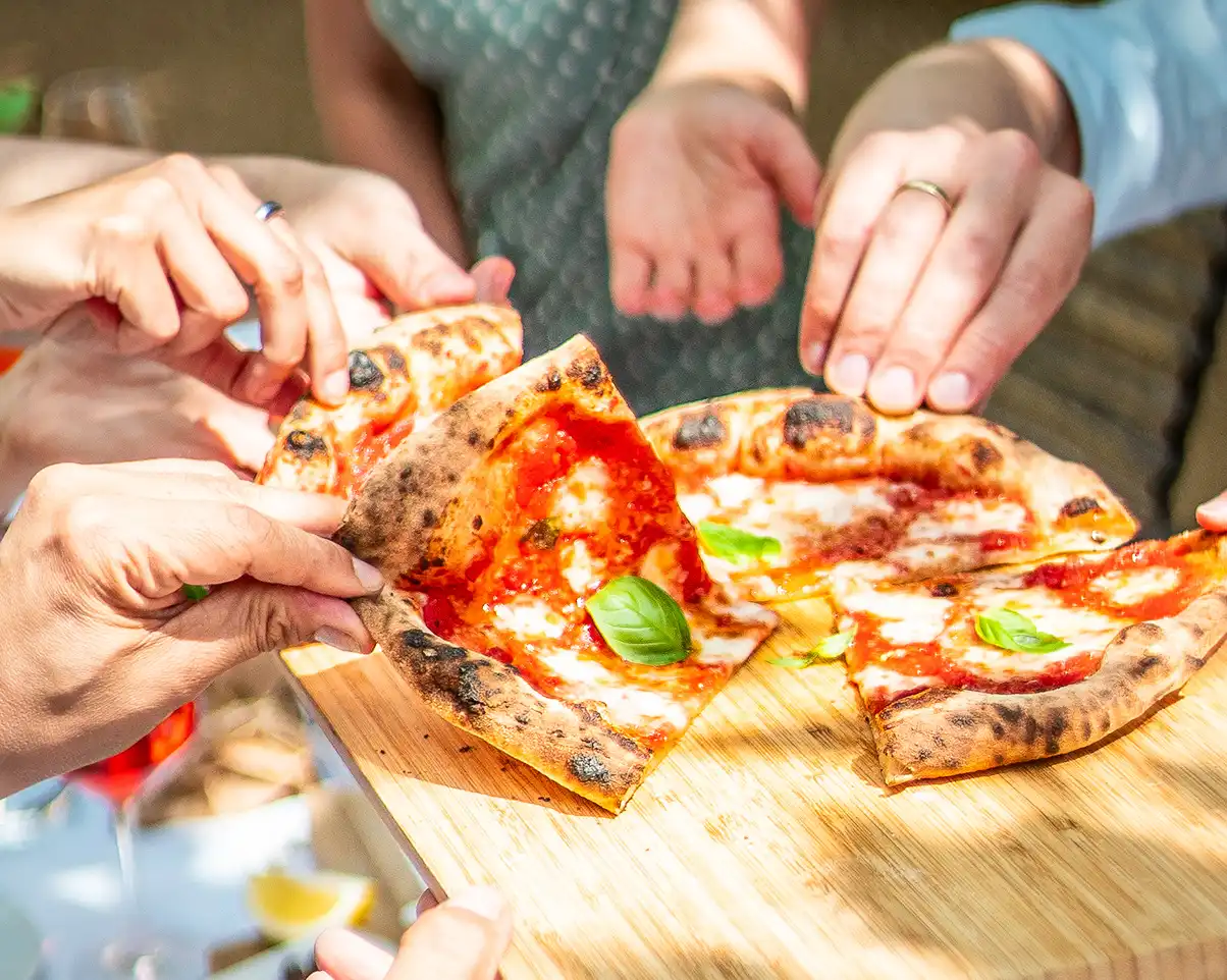 Mittags im Büro kommt oft eine schnelle Pasta auf den riesigen Küchentisch. Unser neapolitanischer Kollege Toni erklärt dazu dann regelmäßig, warum Neapel der Nabel der Welt ist. Du musst dazu wissen, dass Kultur und Geschichte Neapels sich oft vom Rest Italiens unterscheiden. Toni hat uns schon viel über seine Heimat gelehrt und uns alle dabei oft zum Lachen gebracht. Freitags ist dann Pizzafriday. Da experimentieren wir am Pizzaofen und fachsimpeln über die Länge der Teigführung, den Proteingehalt der Mehle, Hydrationsstufen oder Lievito madre.