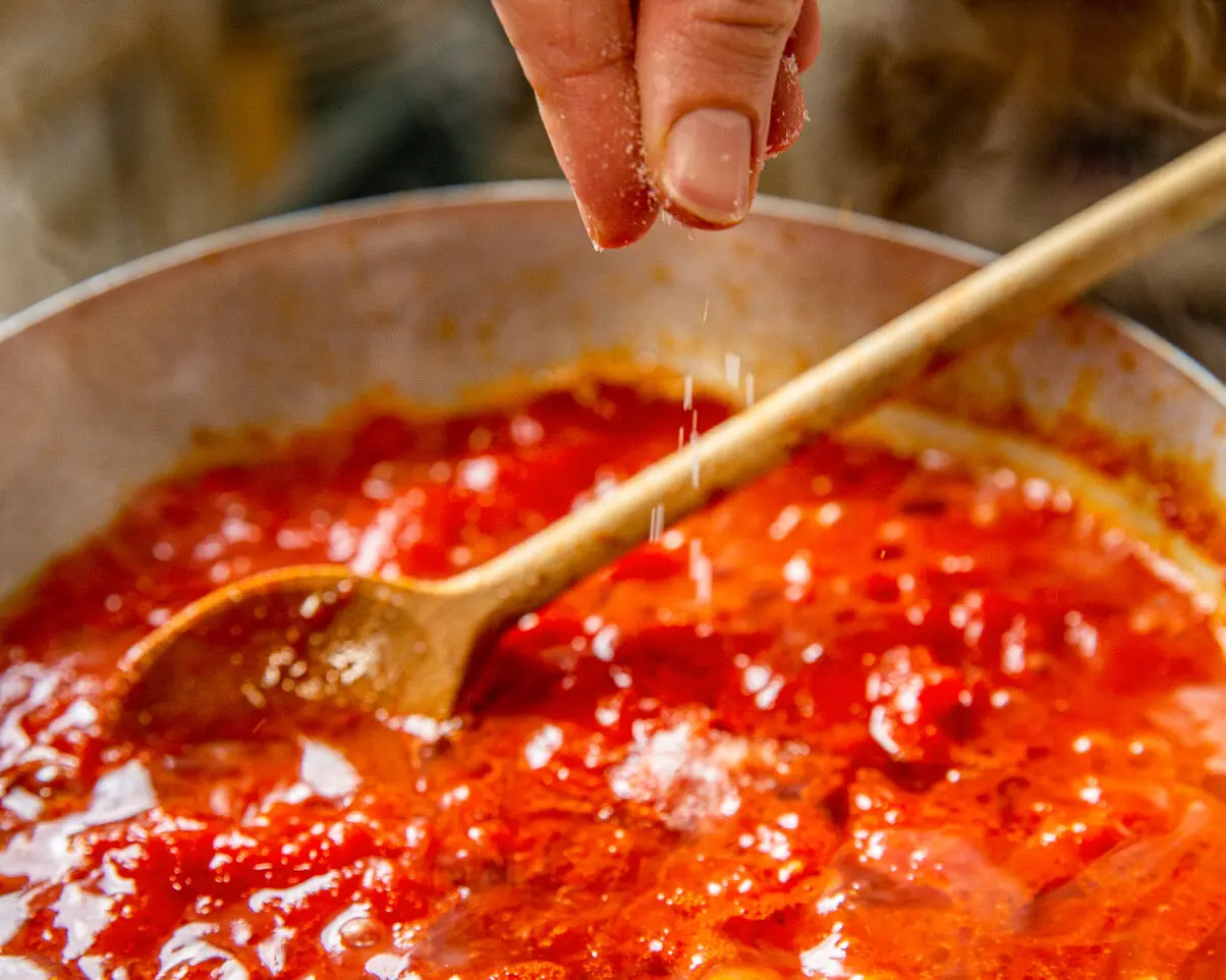 Tomatenfruchtfleisch, Natives Olivenöl Extra, Zwiebeln, Karotten, Sellerie, Knoblauch, Salz, Zucker.